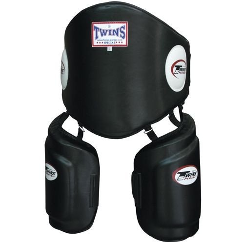 Entraînez-vous en toute sécurité avec la ceinture de frappe et protège-cuisses Twins BPLK, la référence en équipement de boxe en provenance de la Thaïlande.