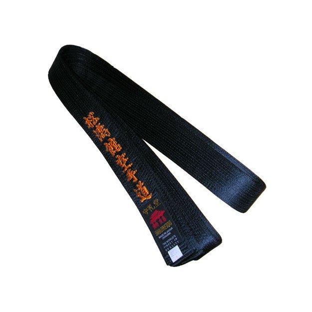 Notre ceinture de karaté Shureido est disponible en finition satin brodée Shotokan Karaté Do, en tailles T3 à T8. Cette ceinture de karaté existe également en finition piquée coton.