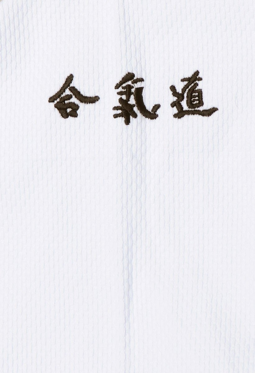 - Détails : broderies "aïkido" en kanji japonais sur la manche gauche,