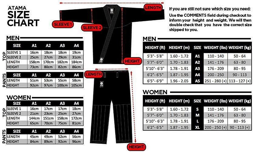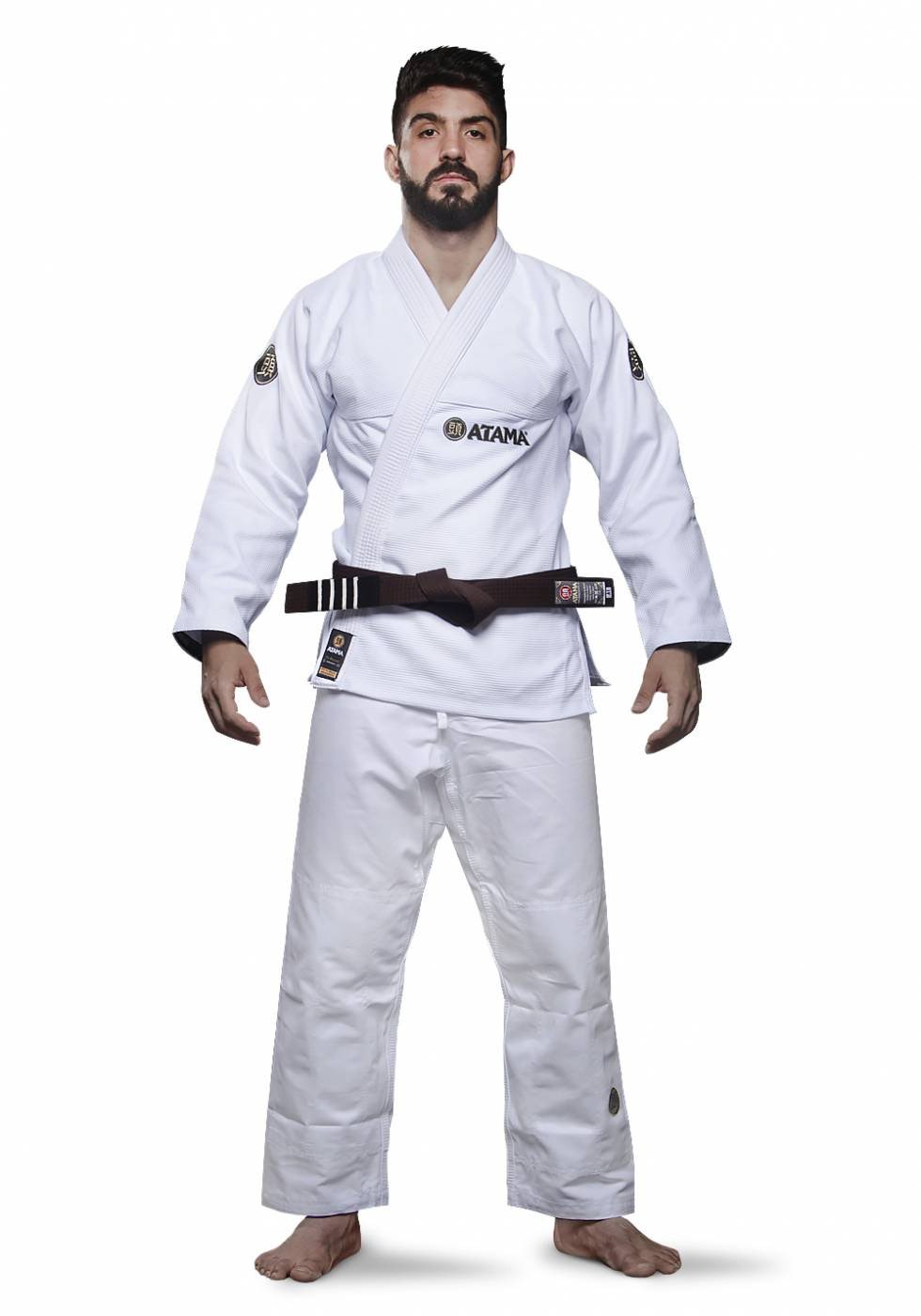 - Logo Atama Jiu Jitsu brodé sur le pantalon, le dos, les manches et la poitrine