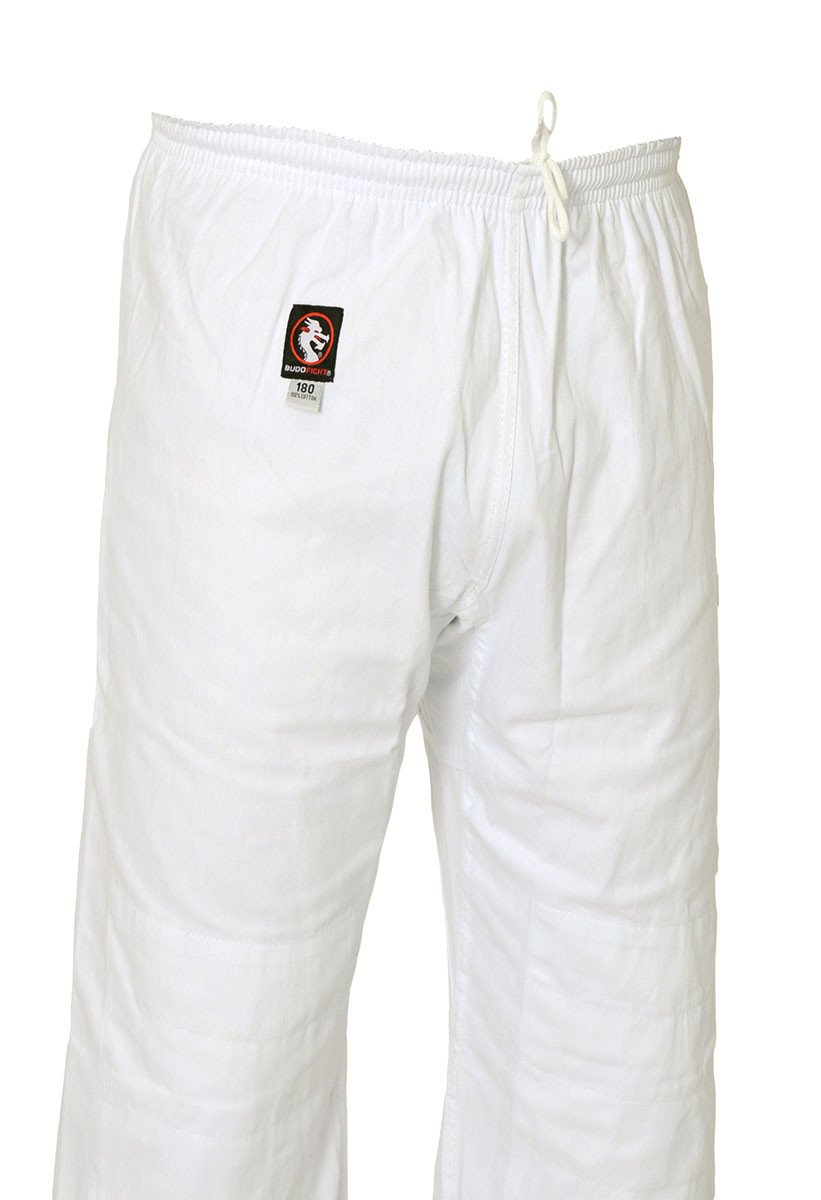 Ce kimono judo (ou encore judogi) 100 % coton est composé d'une veste renforcée avec un grammage de 500g/m², d'une jupe tissée en losange et d'un pantalon de kimono à ceinture élastique, doublée aux genoux. Il vous apporte donc à la fois confort et résistance lors de vos entraînements.