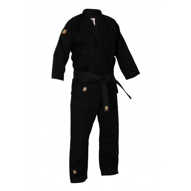 Le Kimono noir "Super Bushido" est destiné à la pratique régulière des Arts Martiaux vietnamiens. Il est composé d'une veste croisée à surpiqûres et d'un pantalon à taille élastique.