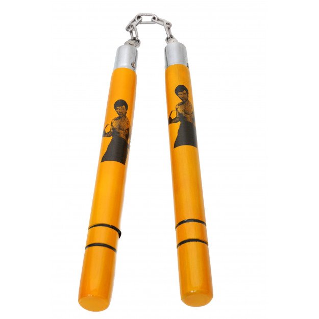 Vous êtes un véritable fan de Bruce Lee ? Budo-Fight fait votre bonheur en vous proposant ce nunchaku à chaîne en bois à l'effigie de cette star des arts martiaux. Un must à avoir chez vous !