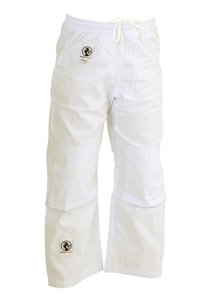Ce pantalon de karaté blanc par Budo-Fight possède un bas large et un élastique de serrage à la taille, pour un confort incomparable !