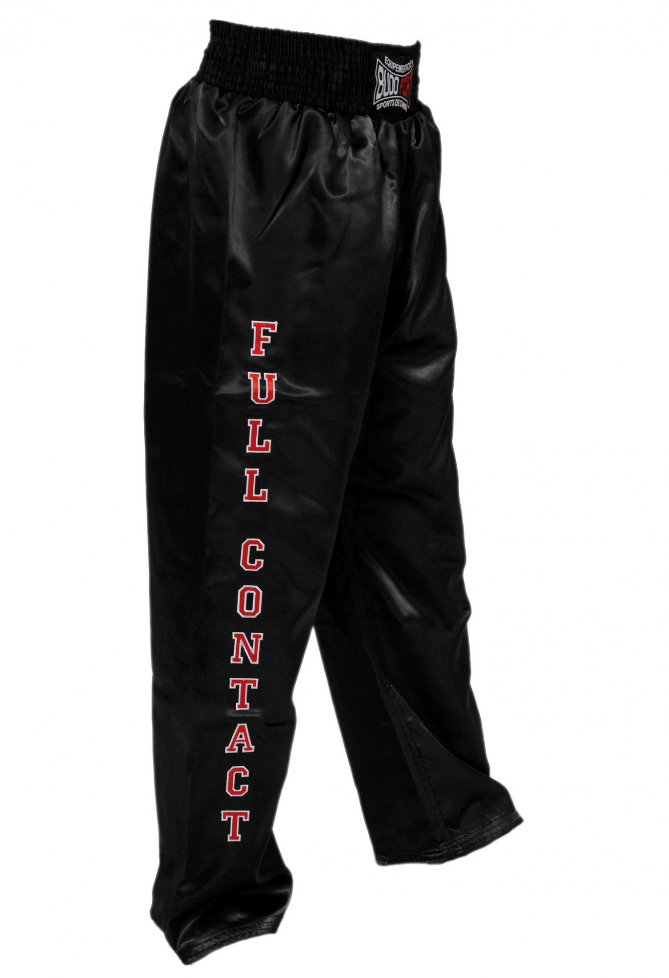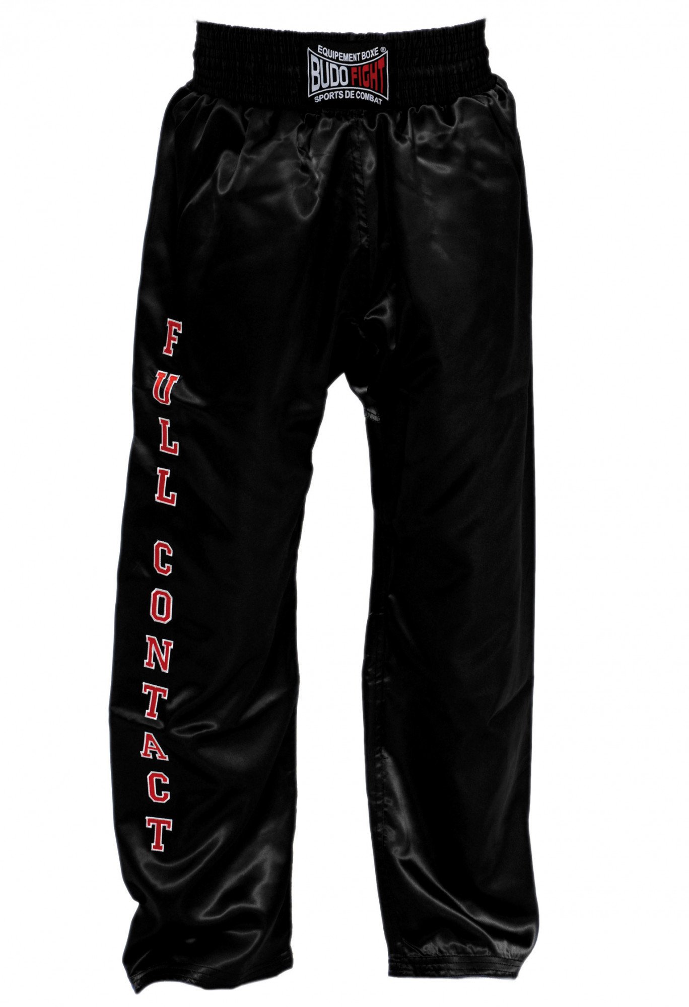 - logo "Budo-Fight" brodé au niveau de la ceinture et marquage "Full Contact" sur la jambe droite ;