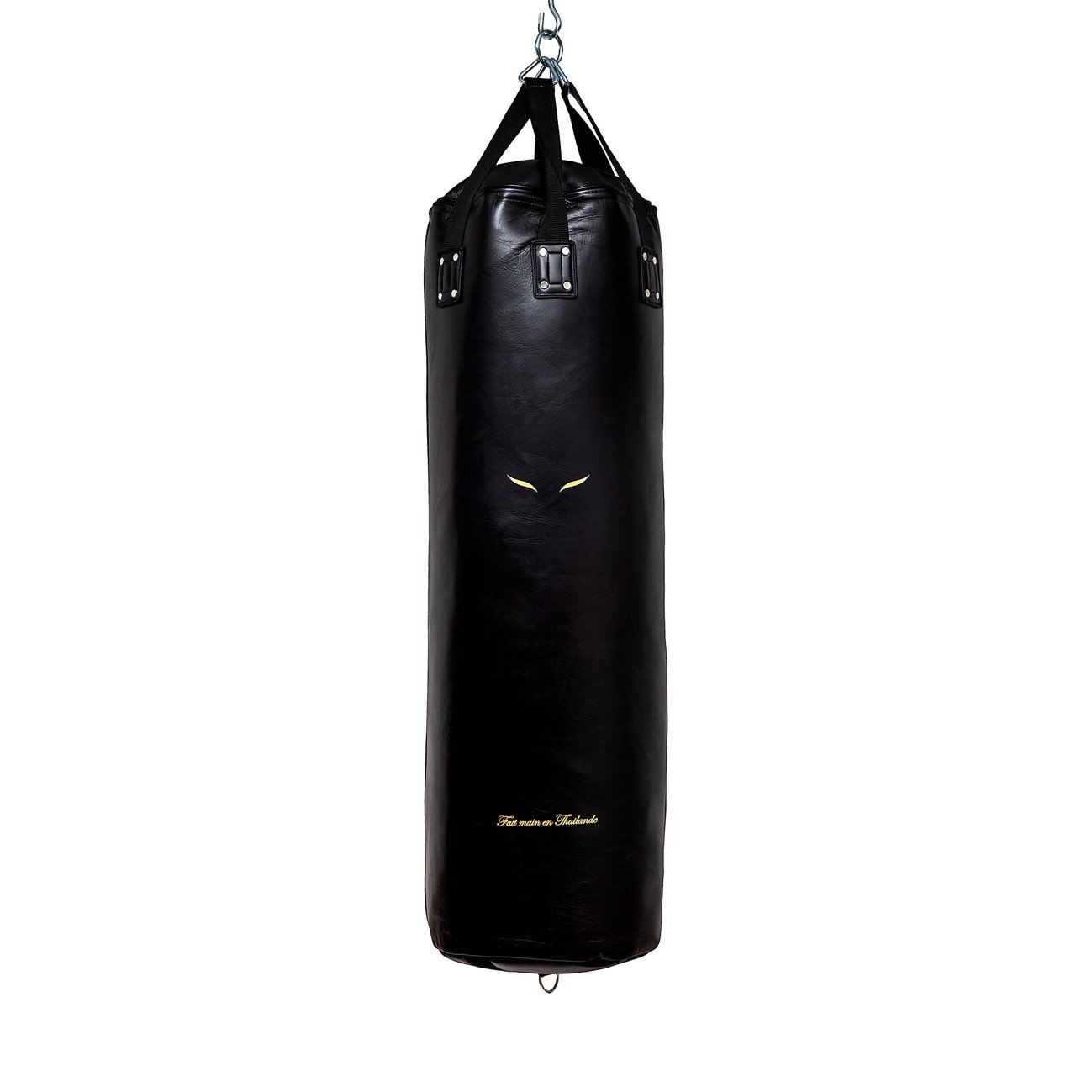 Ce sac de frappe de très belle facture accompagnera vos progrès pendant des années. Constitué d'une seule pièce de cuir, il a été minutieusement fabriqué à la main dans le pays emblématique du Muay Thaï : la Thaïlande. Aucun raccord : aucun déchirement ! Les sangles sont très solides, de même que les fixations.