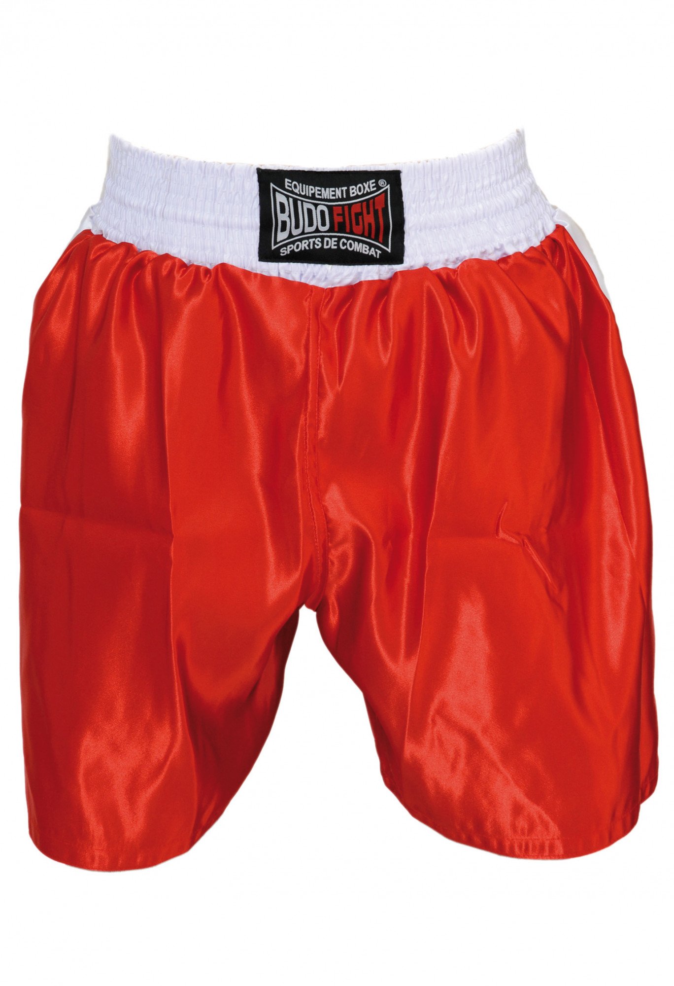 Découvrez ce short de boxe anglaise rouge en satin par Budo-Fight : un équipement résistant, léger et confortable !