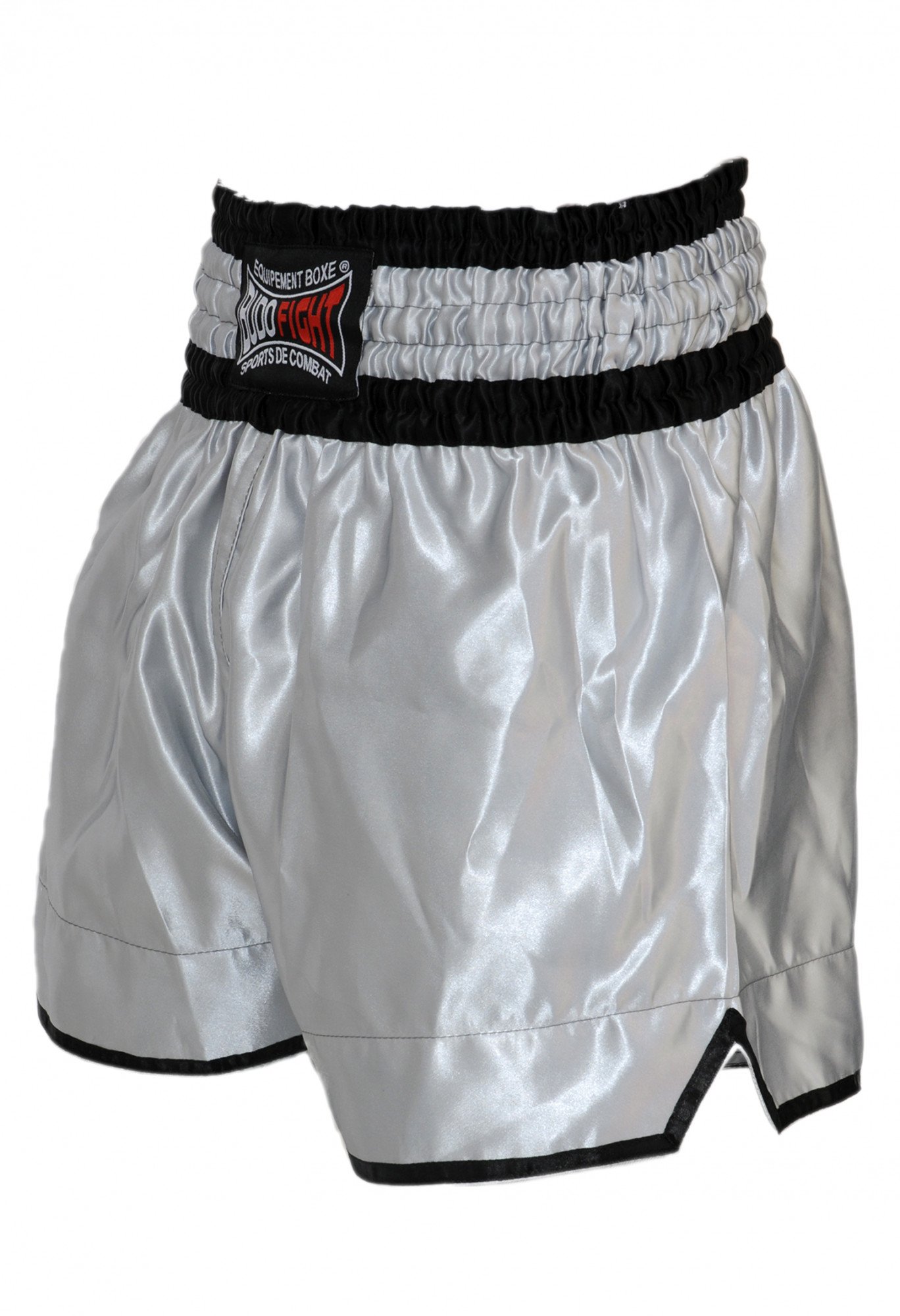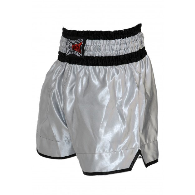 Ce short de boxe thaï vous est proposé en taille XS, S, M, L et XL : nous vous conseillons d'opter pour votre taille habituelle. Il est présenté ici dans une élégante couleur gris argenté, mais existe aussi en blanc, en bleu, en rouge, ou encore en noir.